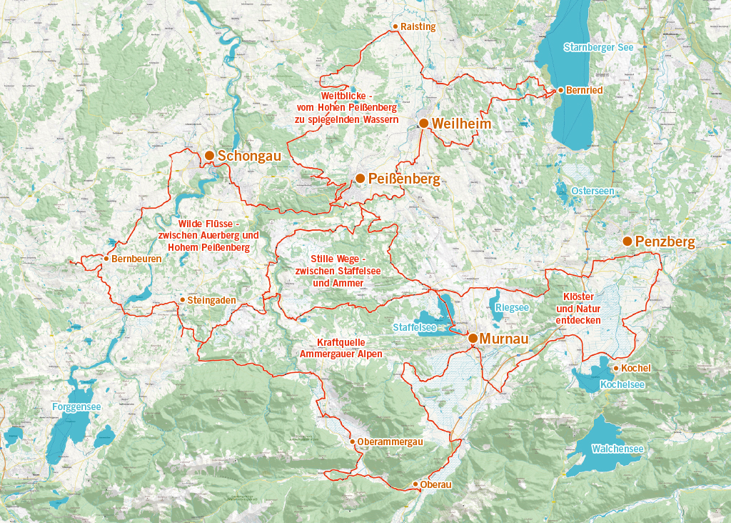 Das Wegenetz „Radpilgern durch Zugspitz Region und Pfaffenwinkel“ lädt dazu ein, Radfahren auf eine ganz neue, entschleunigende Weise zu erleben. Perfekt ausgeschilderte Radwege eröffnen den Zugang zur spirituellen Seite dieser einzigartigen Landschaft – mit Natur- und Kulturerlebnissen, inspirierenden Klöstern, Kraftorten und wohltuenden Weitblicken.