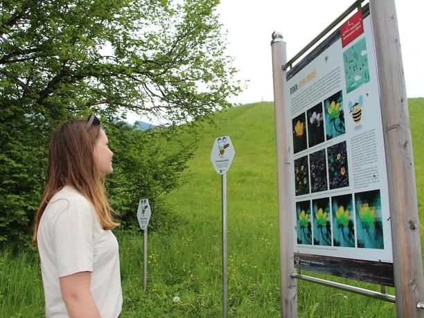 Der Standort in Bad Kohlgrub kommt nicht von ungefähr, denn hier wurde der Bienenforscher Martin Lindauer geboren, welcher bedeutend zur Erforschung des Verhaltens der Bienen untereinander beigetragen hat. Auf den neun verschiedenen Stationen wird zum Mitmachen angeregt und Lehrreiches über das Leben Themenweg Themenweg - Bienenweg Bad Kohlgrub 2 / 7 der Bienen vermittelt. Die „Kinderbiene“ gibt den Jüngsten Aufgaben zum Forschen und Entdecken, die „Gärtnerbiene“ gibt Tipps für einen bienenfreundlichen Garten und die „Wissenschaftlerbiene“ informiert über das Leben und Wirken des kleinen Insekts. Als Highlight gibt es eine Schaubeute am Wiesmahdstadl zu bestaunen, wo man durch eine Scheibe dem Bienenvolk beim Arbeiten im Stock zusehen kann. Durch die interaktiven Elemente bleibt der Weg spannend und ganz nebenbei lernt man vieles über das Verhalten der fleißigen Insekten und was man für Ihren Schutz beitragen kann.